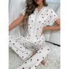 Женский пижамный комплект с кружевной отделкой, топ с короткими рукавами и пуговицами спереди, длинные брюки с принтом вишни, 2 предмета, одежда для сна, домашняя одежда