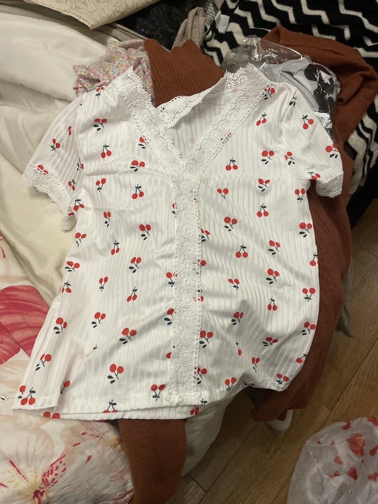 Женский пижамный комплект с кружевной отделкой, топ с короткими рукавами и пуговицами спереди, длинные брюки с принтом вишни, 2 предмета, одежда для сна, домашняя одежда — купить товар онлайн с бесплатной доставкой по всему миру!