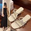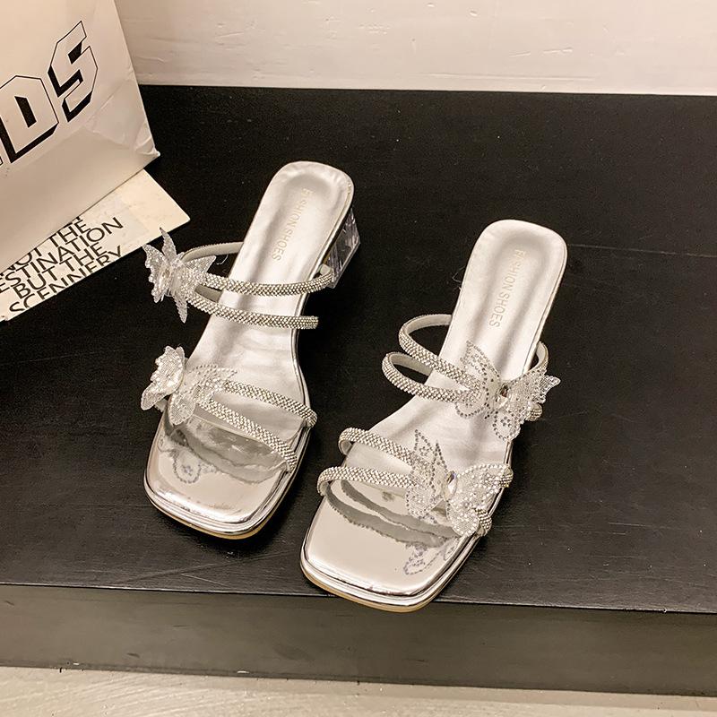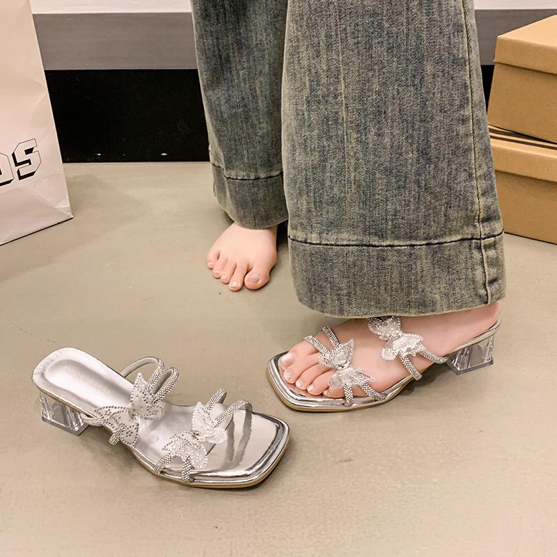 Модные шлепанцы с бантом из стразов, женская летняя обувь, сандалии на толстом каблуке, новинка 2025 года, удобная женская обувь