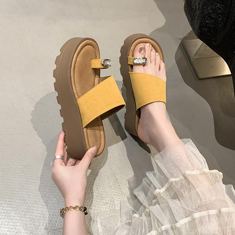Крутые шлепанцы на толстой подошве для лета 2025, новые, универсальные, в стиле ретро, со стразами, сандалии с перемычкой для пальца