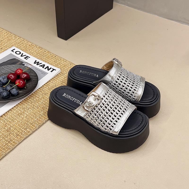 Баотоу новые тканые шлепанцы с одним педалем 2025 Баотоу полушлепанцы на толстой подошве полые маффины ретро крутые шлепанцы женские