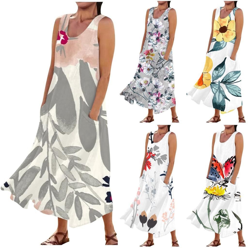 Женское повседневное удобное хлопковое карманное платье без рукавов с цветочным принтом — купить товар онлайн с бесплатной доставкой по всему миру!