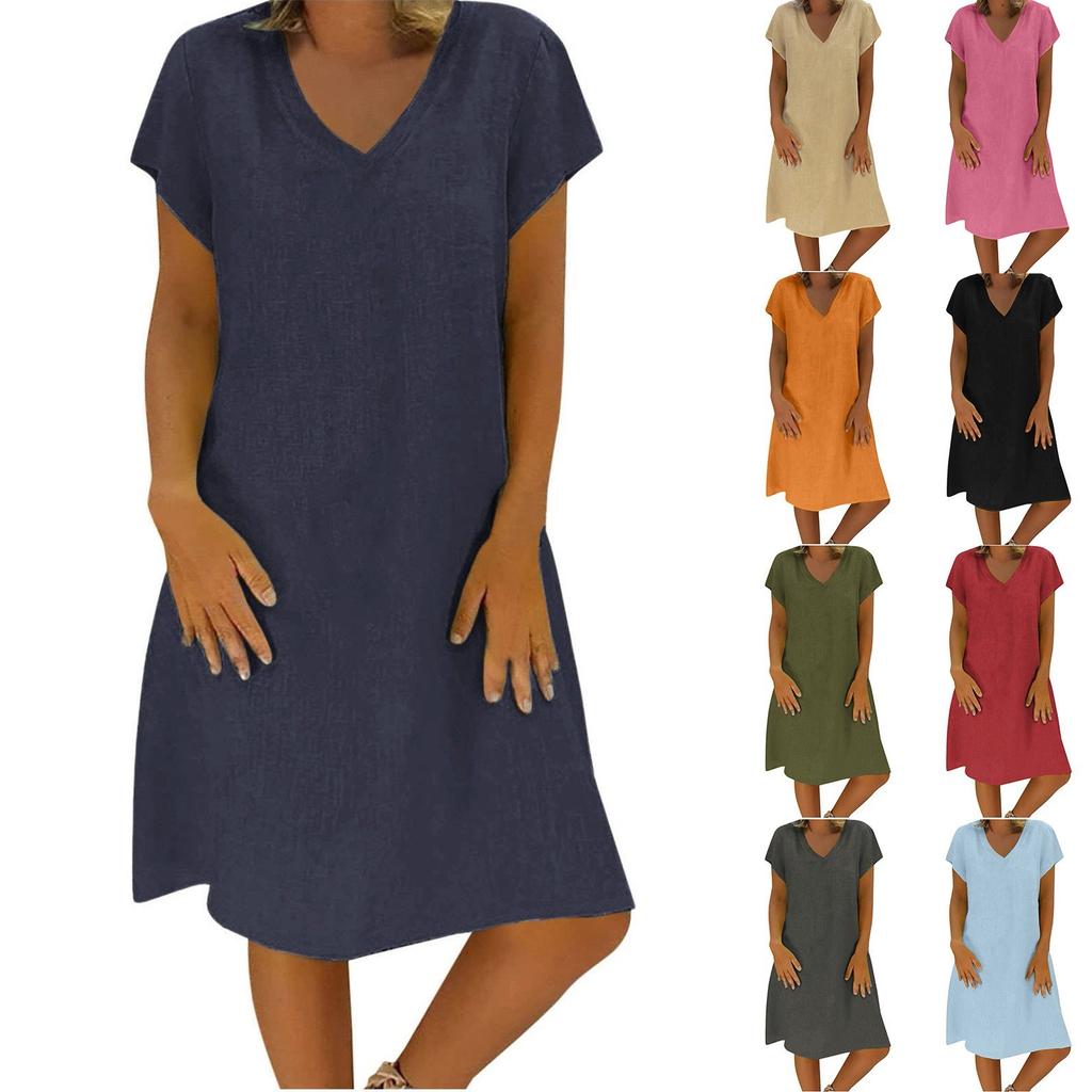 Женские хлопковые и льняные платья, летние с коротким рукавом, удобные дорожные пляжные платья, модная одежда для весеннего отпуска