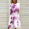 Жен. Повседневные платья Платья с принтами Летние платья С принтами Плиссированные платья-миди с круглым вырезом Классический Классический На открытом воздухе Повседневные С короткими рукавами Свободные платья