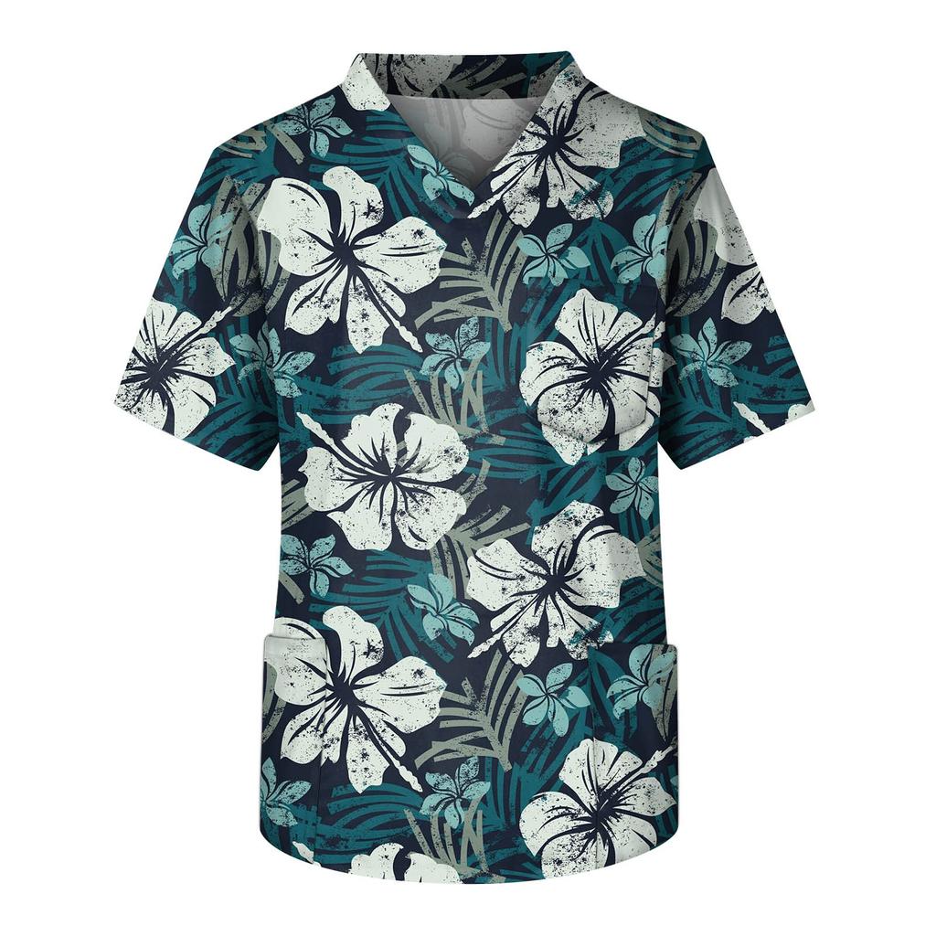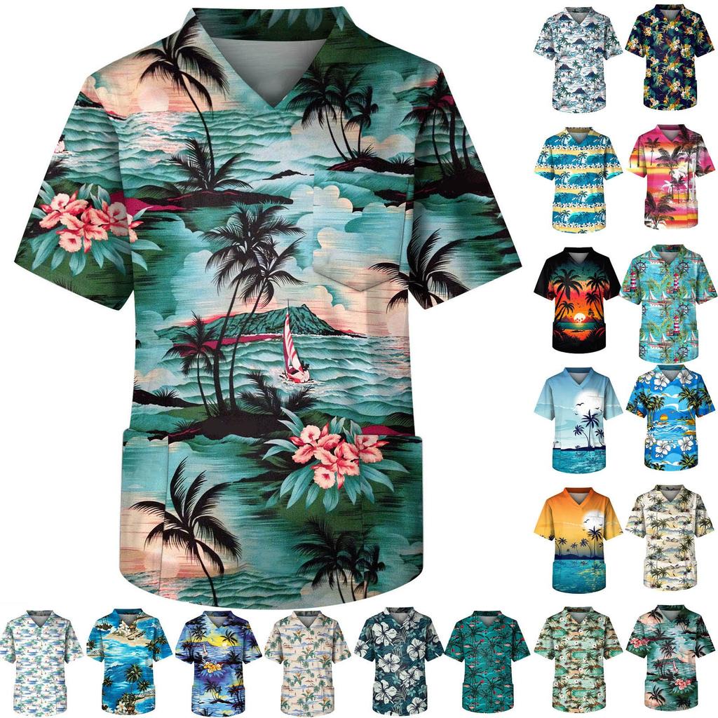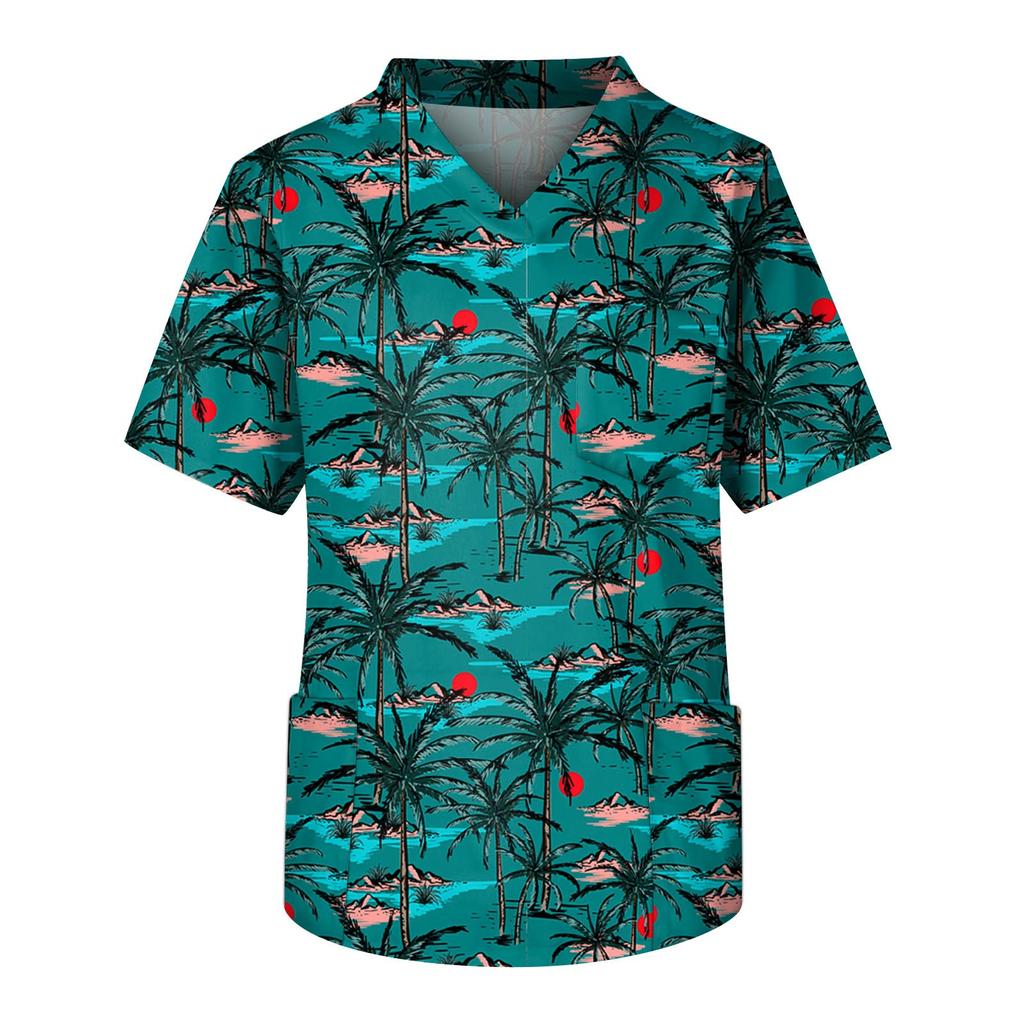 Мужской топ с короткими рукавами и v-образным вырезом, летний принт, нагрудный карман, топ для ухода за работниками