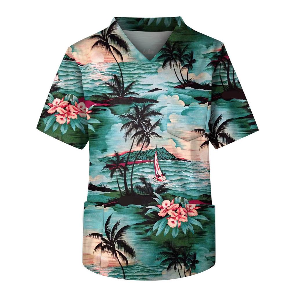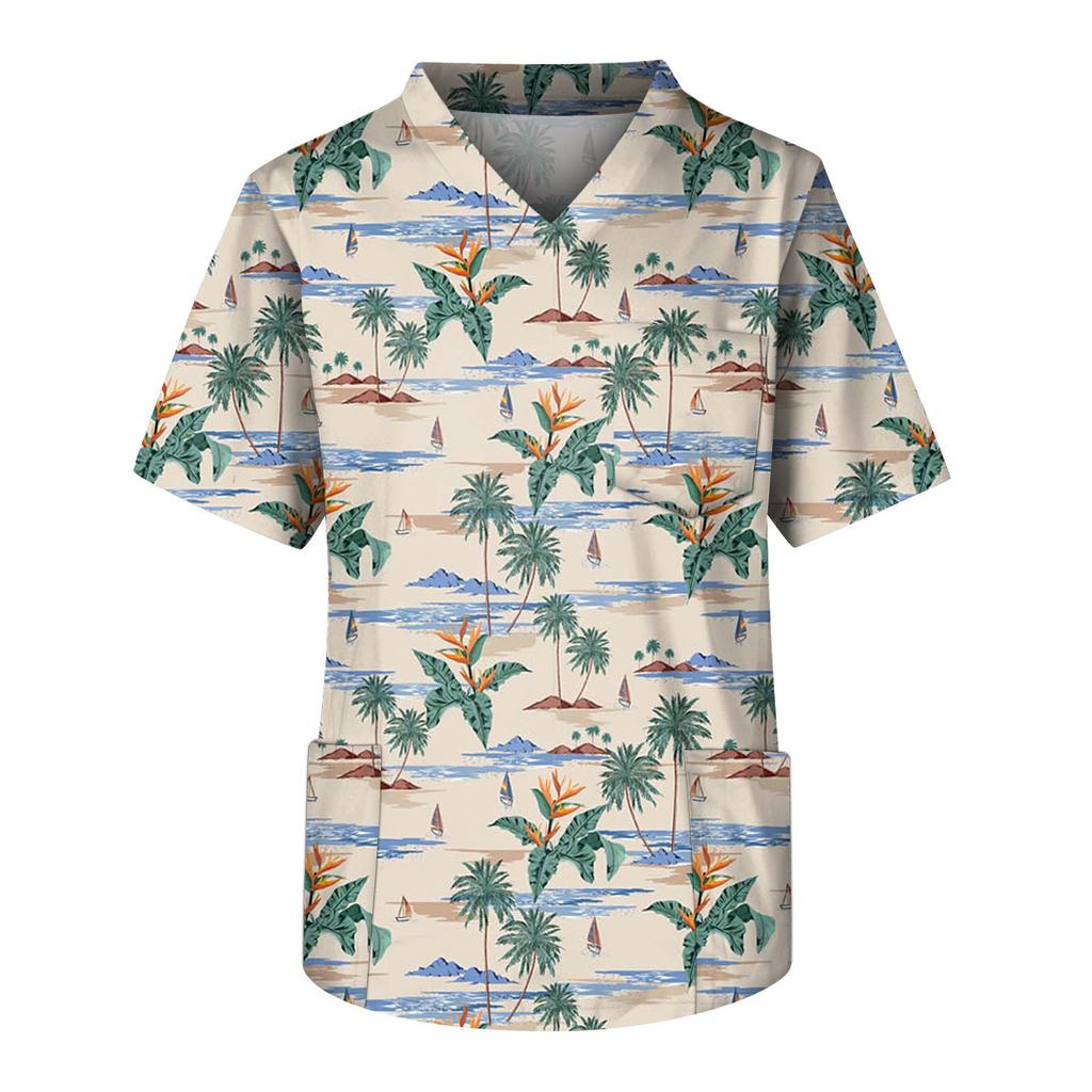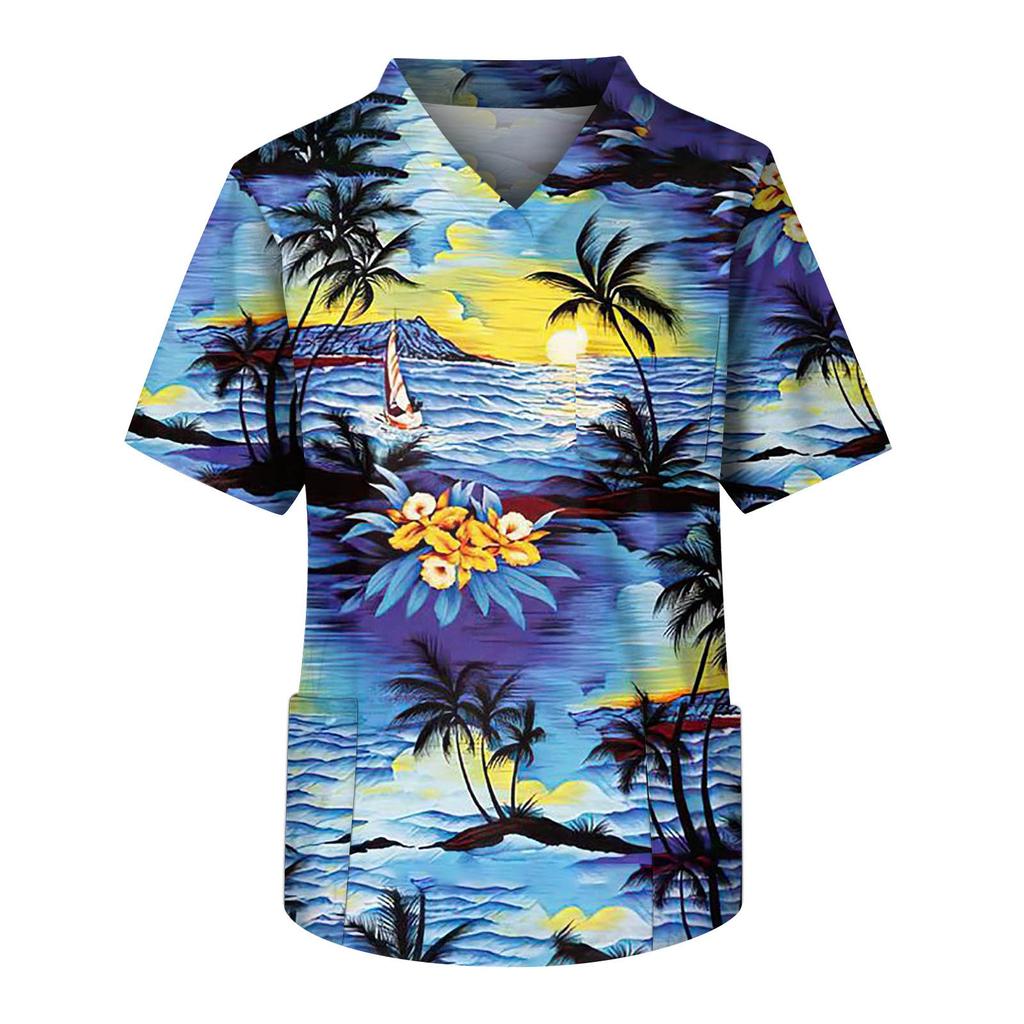 Мужской топ с короткими рукавами и v-образным вырезом, летний принт, нагрудный карман, топ для ухода за работниками