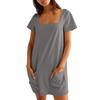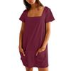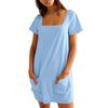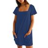 Женское однотонное повседневное платье с квадратным воротником и короткими рукавами, юбкой и карманом