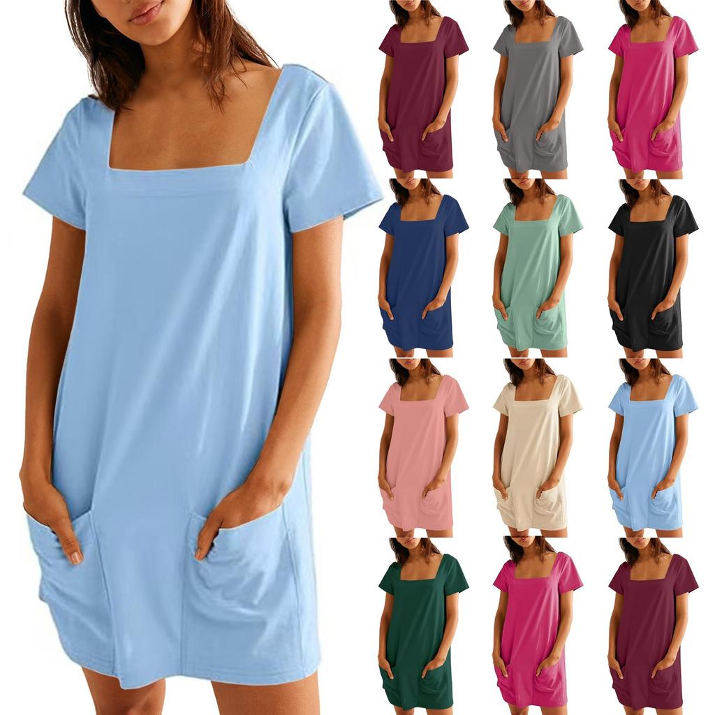 Женское однотонное повседневное платье с квадратным воротником и короткими рукавами, юбкой и карманом — купить товар онлайн с бесплатной доставкой по всему миру!