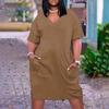 Лето плюс размер V-образным вырезом с коротким рукавом и карманом до колена с градиентным принтом повседневное платье для женщин