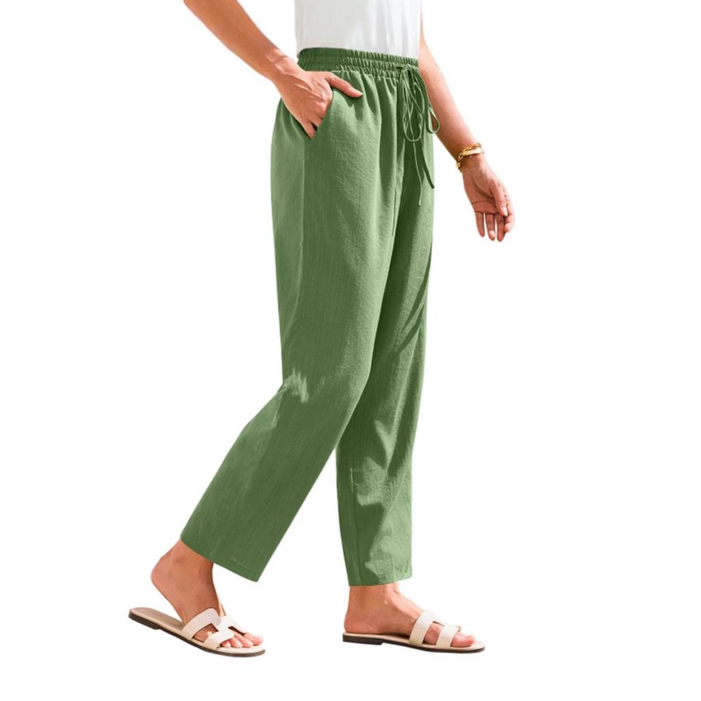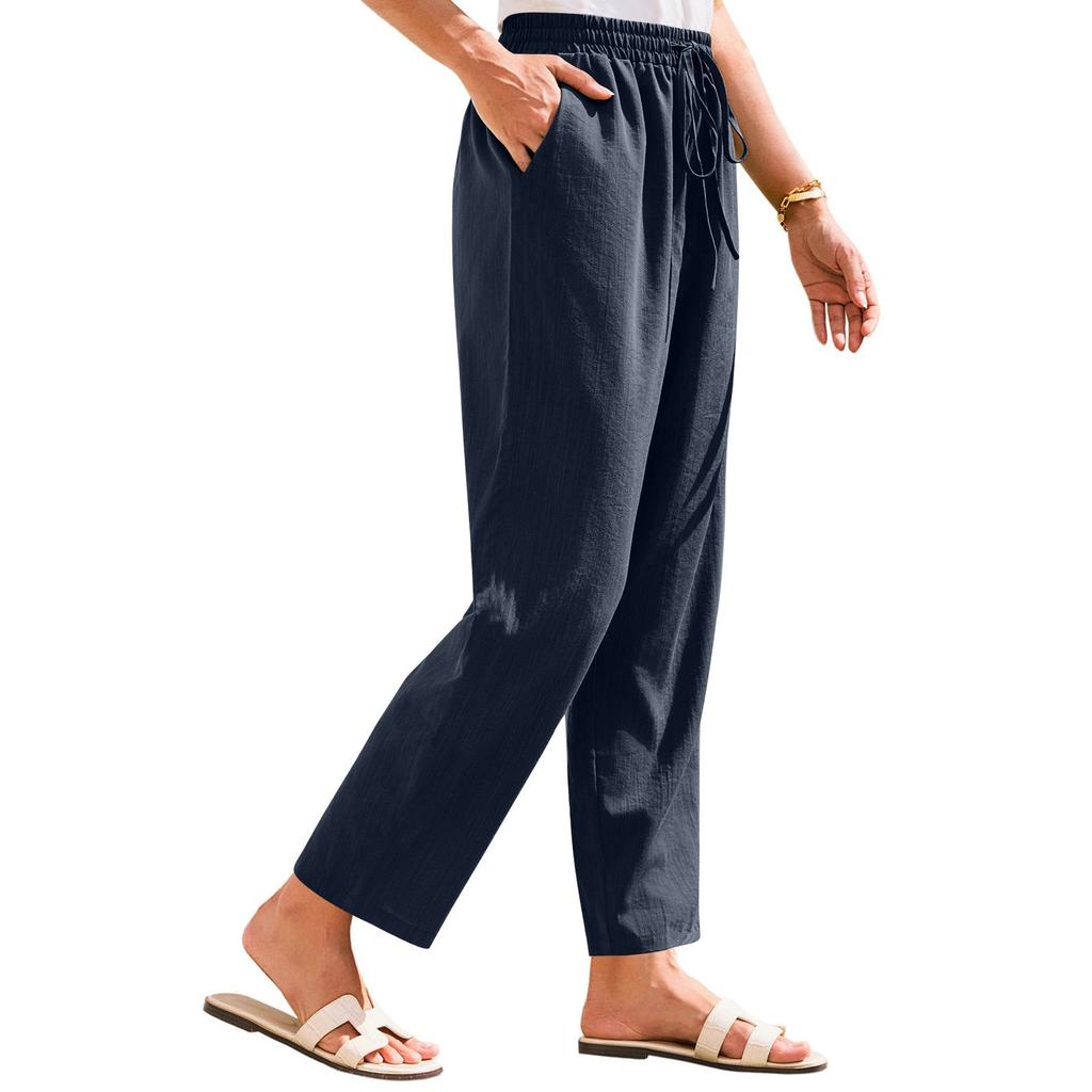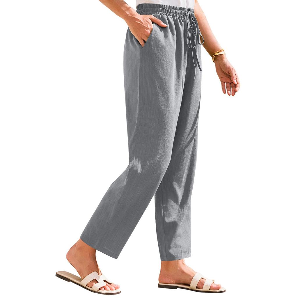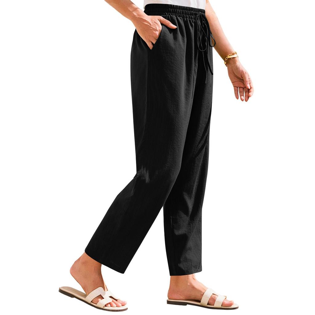 Женские брюки Stralght брюки с карманами Легкие повседневные свободные брюки Летние пляжные брюки на шнурке