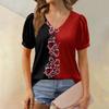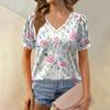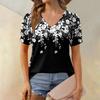 Женская модная футболка с коротким рукавом и V-образным вырезом, с цветочным принтом, свободная повседневная футболка