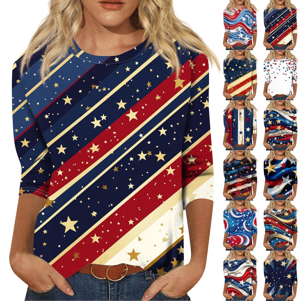 Женская футболка Повседневная футболка с принтом «День независимости», джемпер с круглым вырезом
