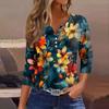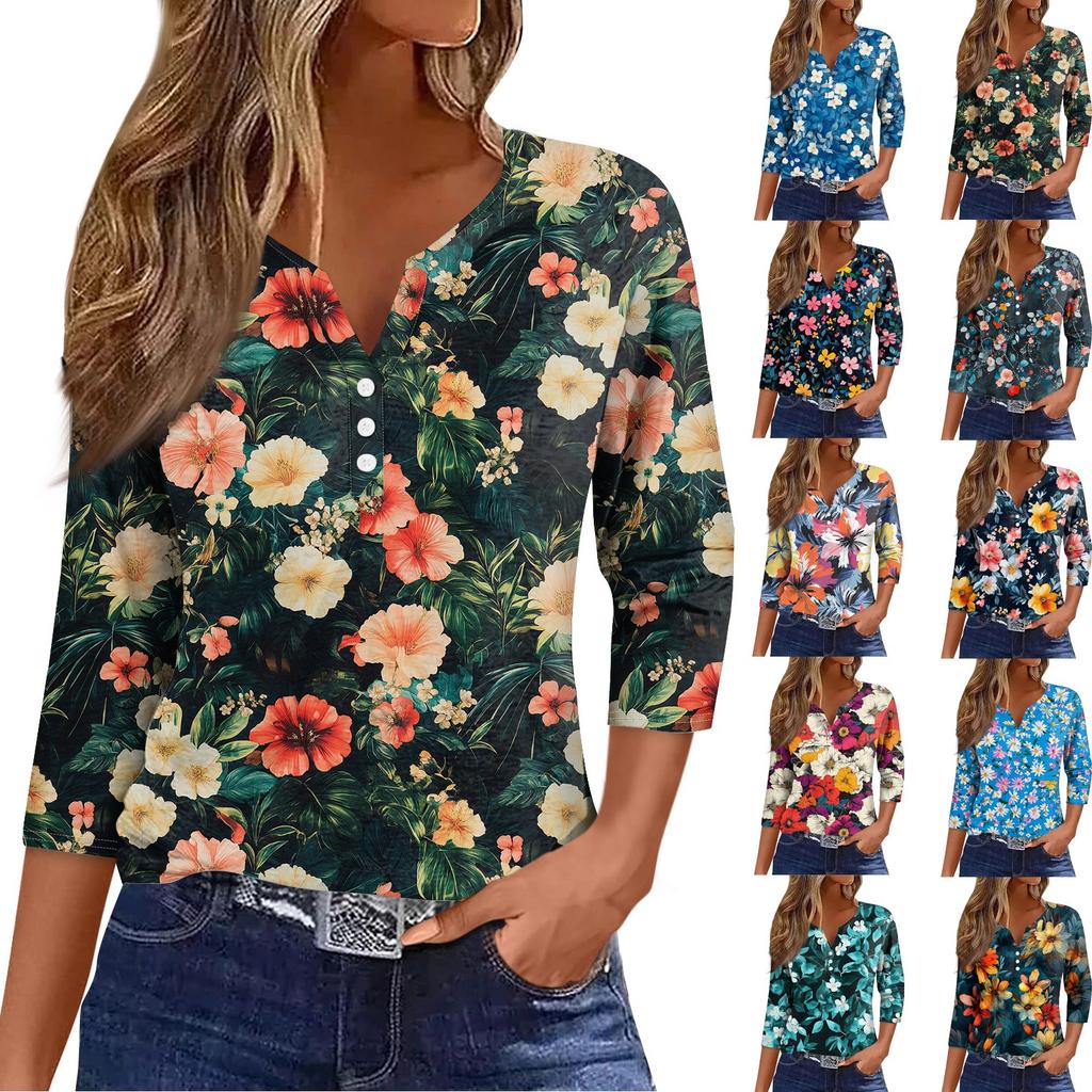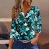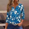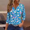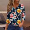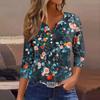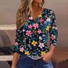 Женский свободный повседневный топ с цветочным принтом и V-образным вырезом с рукавами семь четвертей Топ с V-образным вырезом и рукавами семь четвертей
