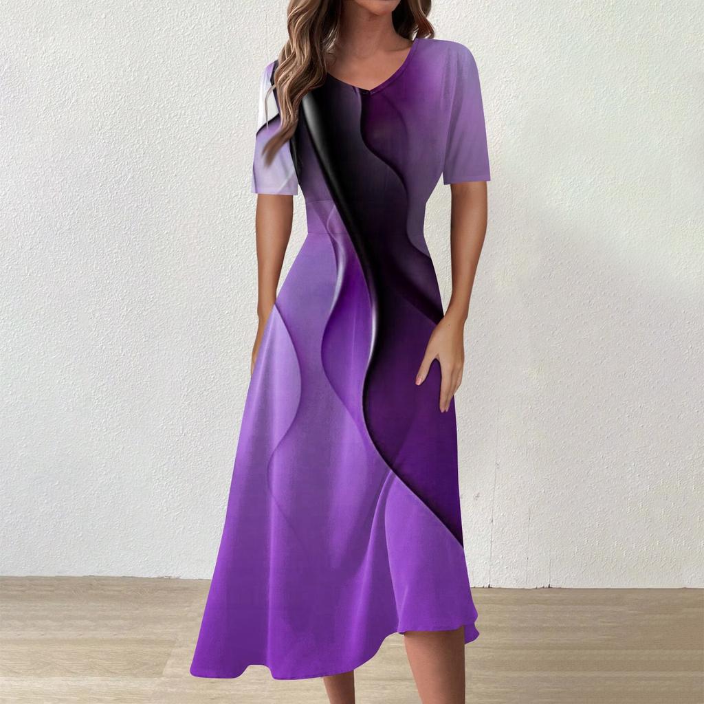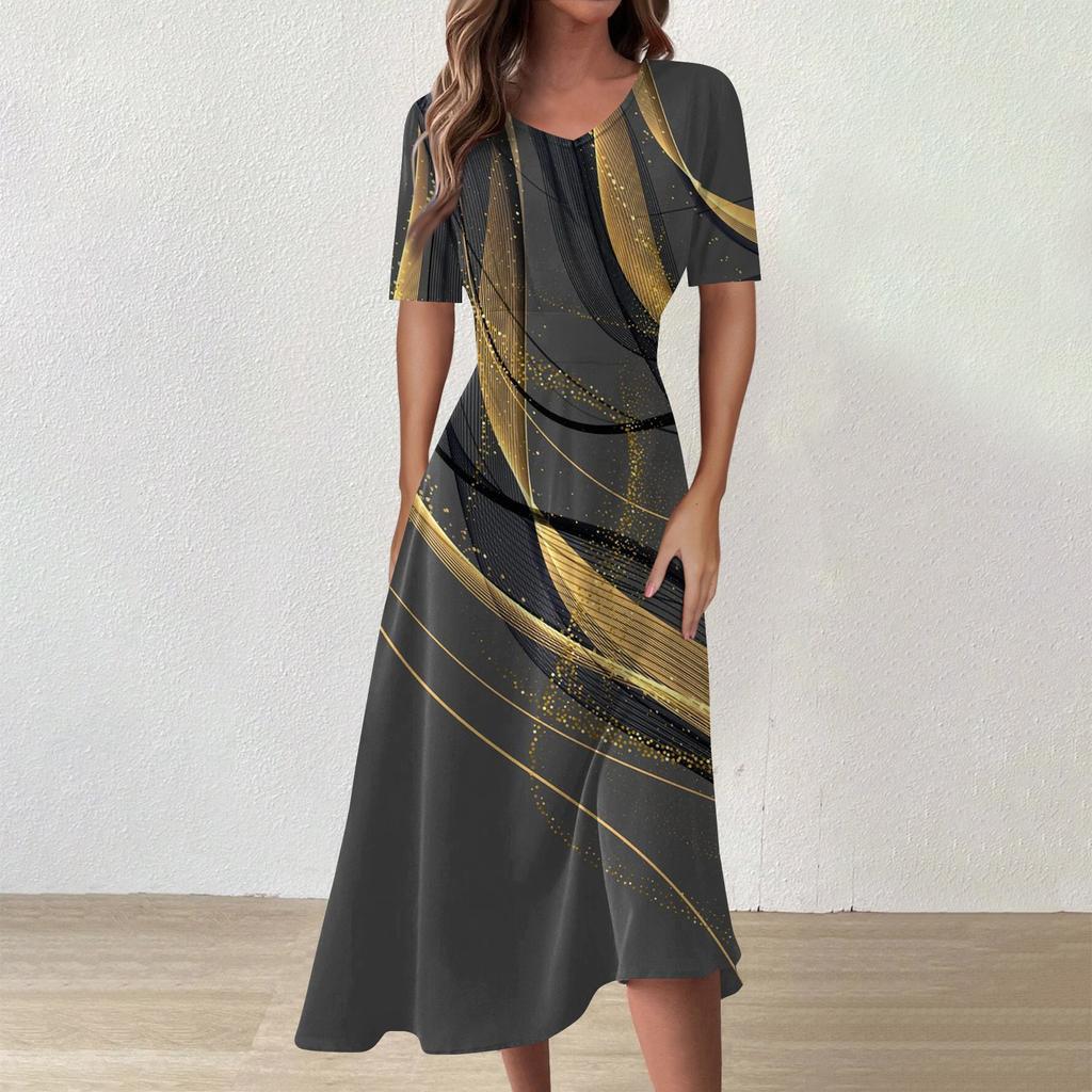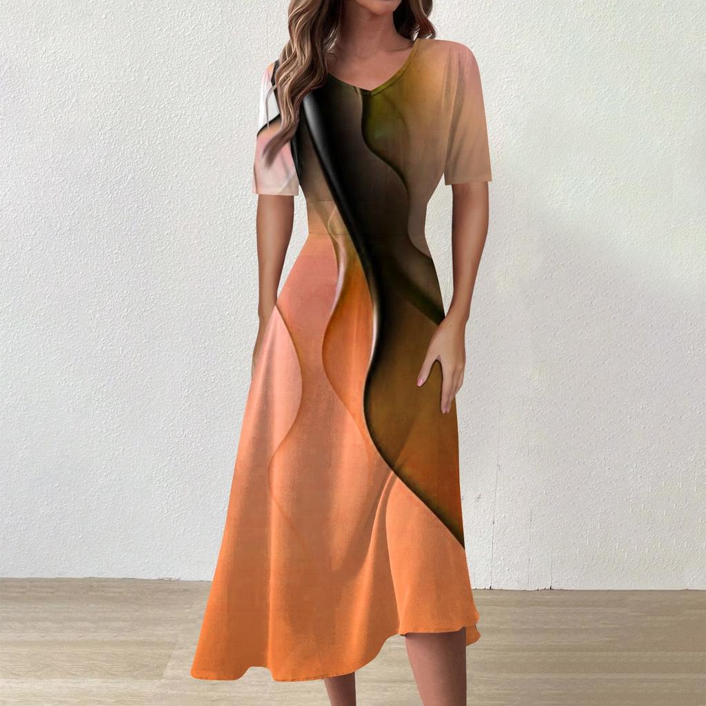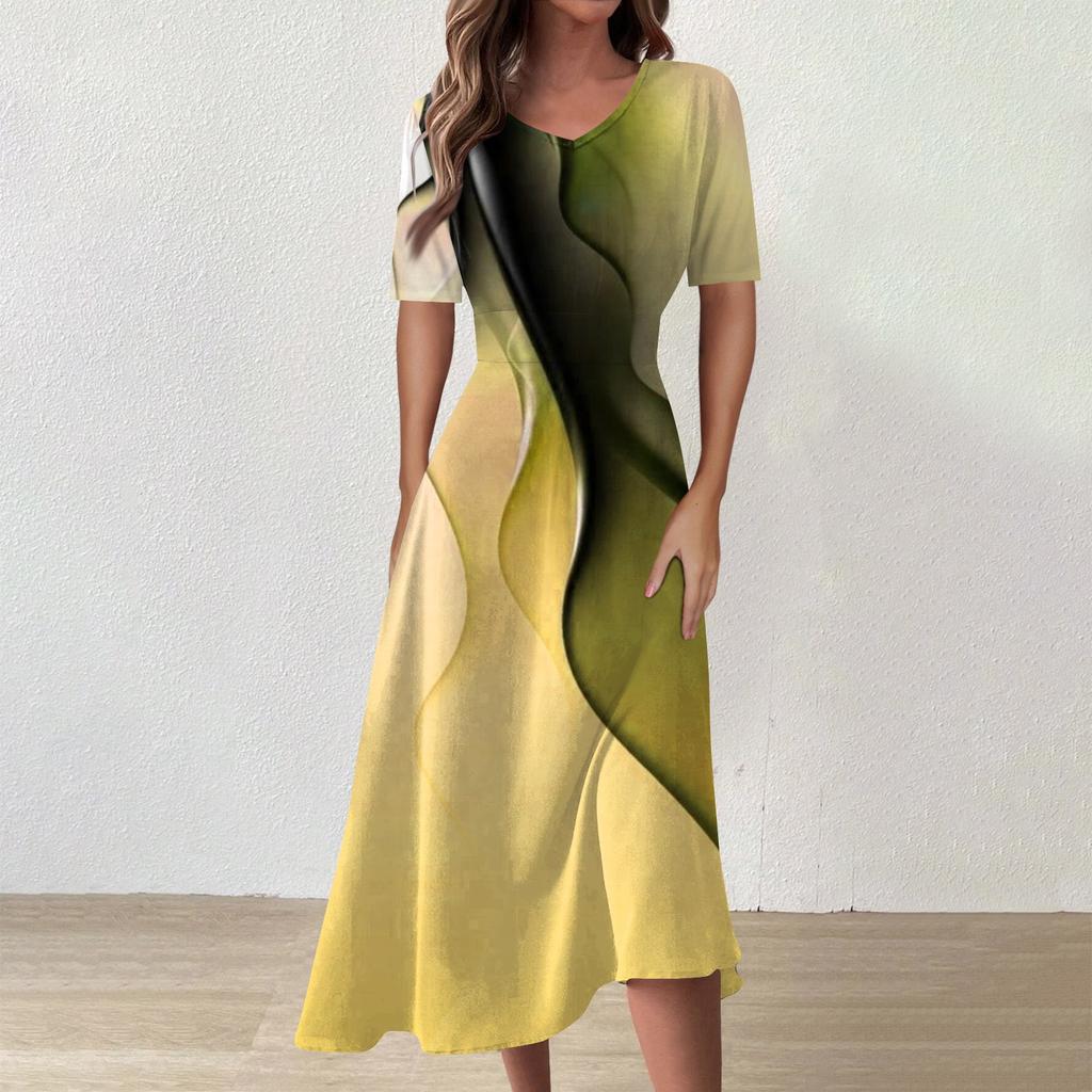 Женское повседневное модное платье с v-образным вырезом и коротким рукавом на талии, длинное свободное платье