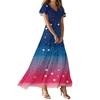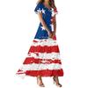 Женские повседневные модные платья с принтом ко Дню независимости, платья с коротким рукавом и V-образным вырезом