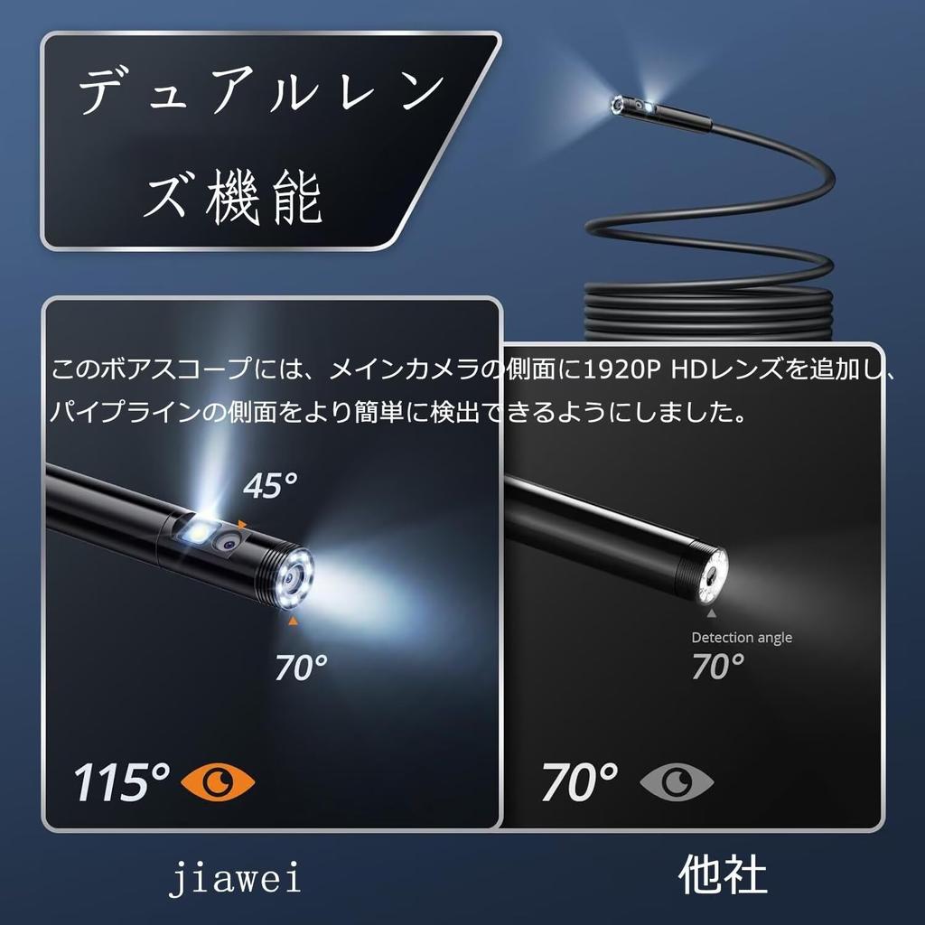 [Функция двойного объектива] Эта бороскопическая камера оснащена функцией двойного объектива и имеет угол обзора 70°, что позволяет обеспечить широкое поле зрения даже в узких пространствах. Благодаря объективу высокой четкости + оптической съемке + интеллектуальному чипу обработки изображений, мы разработали новейшую технологию съемки, чтобы обеспечить наилучшую производительность для каждого объектива.