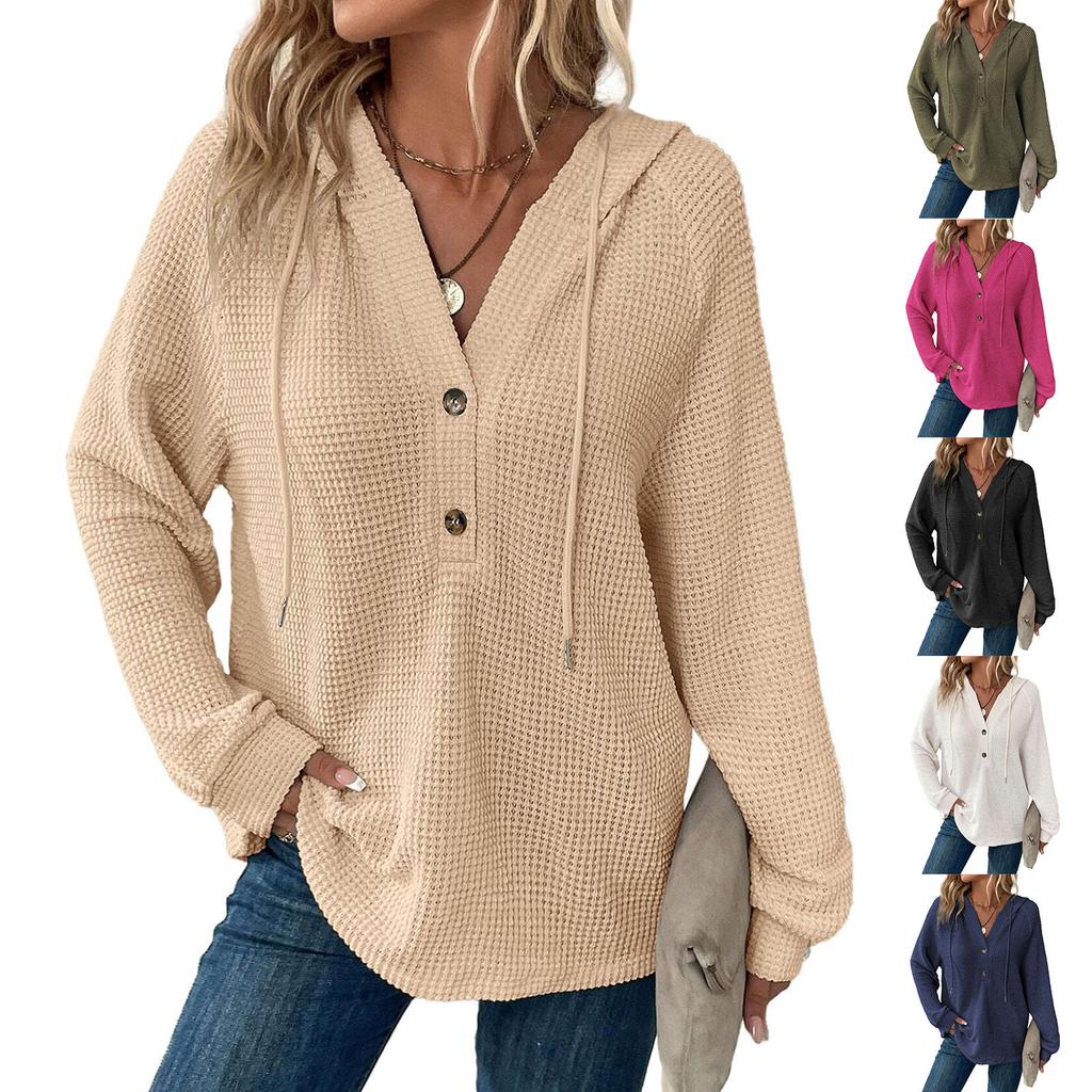 Женская мода с длинным рукавом, завязками на шнурке, капюшоном, пуговицами, V-образным вырезом, повседневная толстовка с капюшоном — купить товар онлайн с бесплатной доставкой по всему миру!