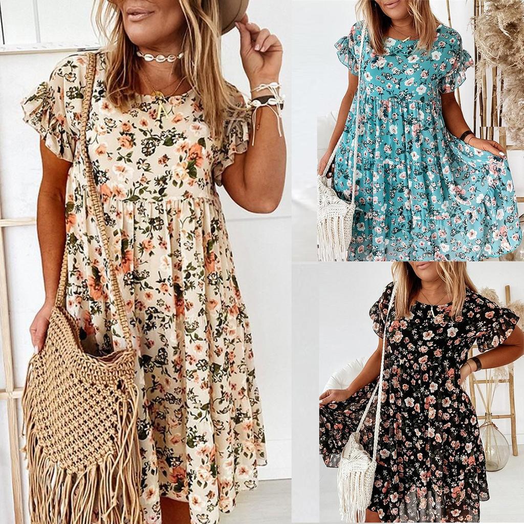 Женское летнее свободное платье трапециевидной формы с небольшими цветочными принтами и рукавами с рюшами — купить товар онлайн с бесплатной доставкой по всему миру!