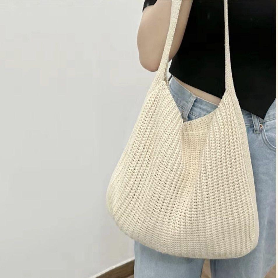 Вязаная сумка-тоут на плечо для женщин - Плетеная повседневная сумка для покупок для поездок на работу большой вместимости — купить товар онлайн с бесплатной доставкой по всему миру!