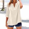 Женская модная свободная футболка с воротником-стойкой на пуговицах из хлопка и льна с семью рукавами — купить товар онлайн с бесплатной доставкой до всему миру!