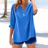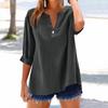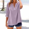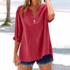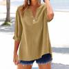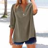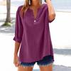 Женская модная свободная футболка с воротником-стойкой на пуговицах из хлопка и льна с семью рукавами