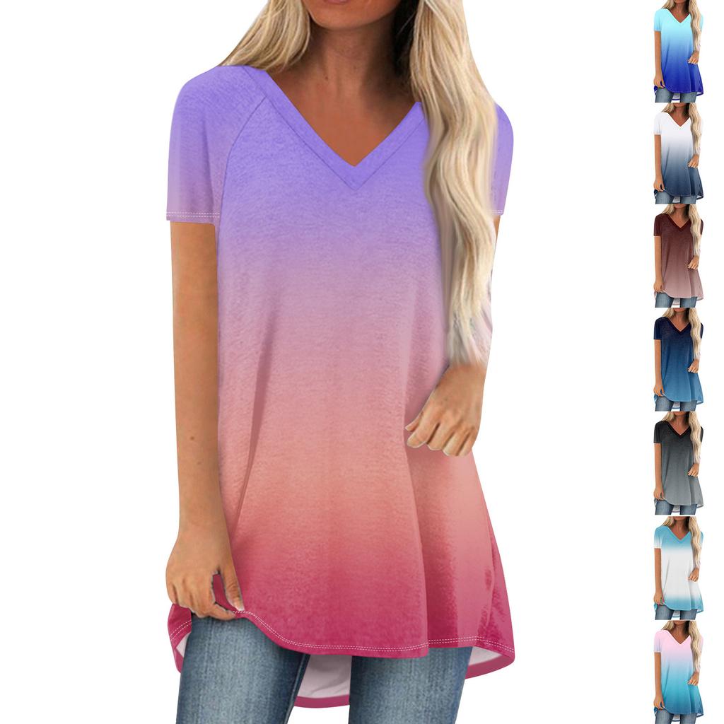 Характеристики: Повседневный стиль показывает ваш уникальный шарм и жизненную силу, добавляя элегантности и чувства моды. Мода Женский Повседневный Свободный Круглый Шея Короткие Рукава Печатная футболка Топ Мягкий и удобный, вам понравится, когда вы его получите
