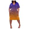 2022 женское летнее повседневное платье больших размеров с V-образным вырезом и короткими рукавами и карманами до колена