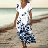 Модное женское летнее пляжное платье с V-образным вырезом и коротким рукавом с винтажным цветочным принтом