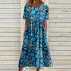Жен. Повседневные платья Платья с принтами Летние платья С принтами Плиссированные платья-миди с круглым вырезом Классический Классический На открытом воздухе Повседневные С короткими рукавами Свободные платья