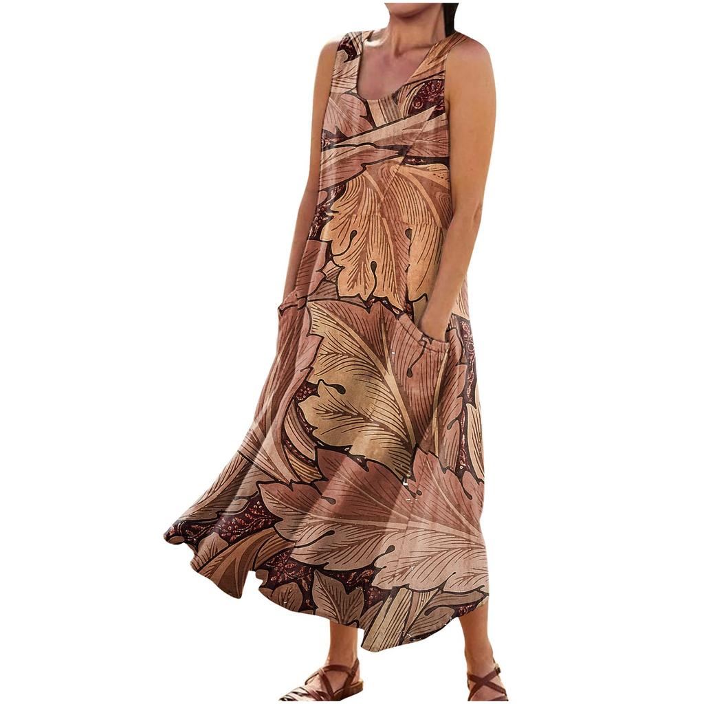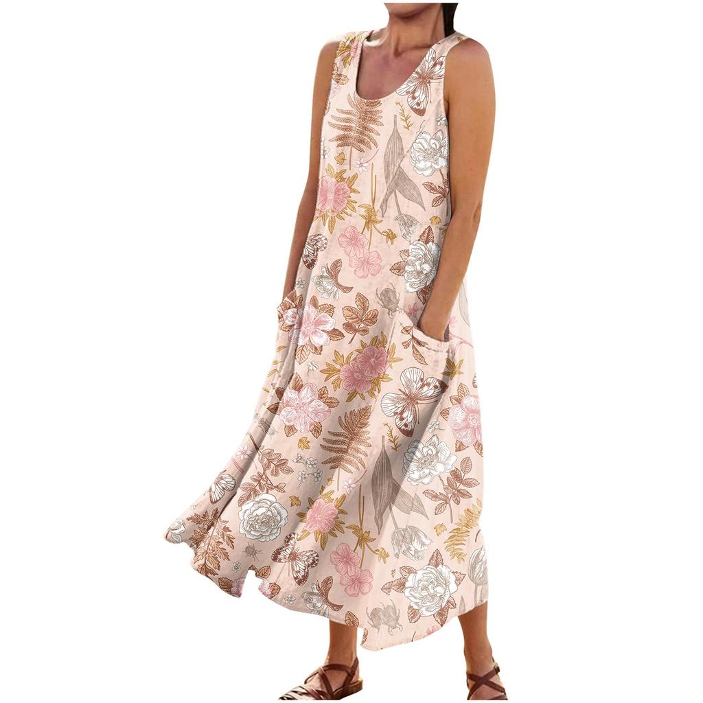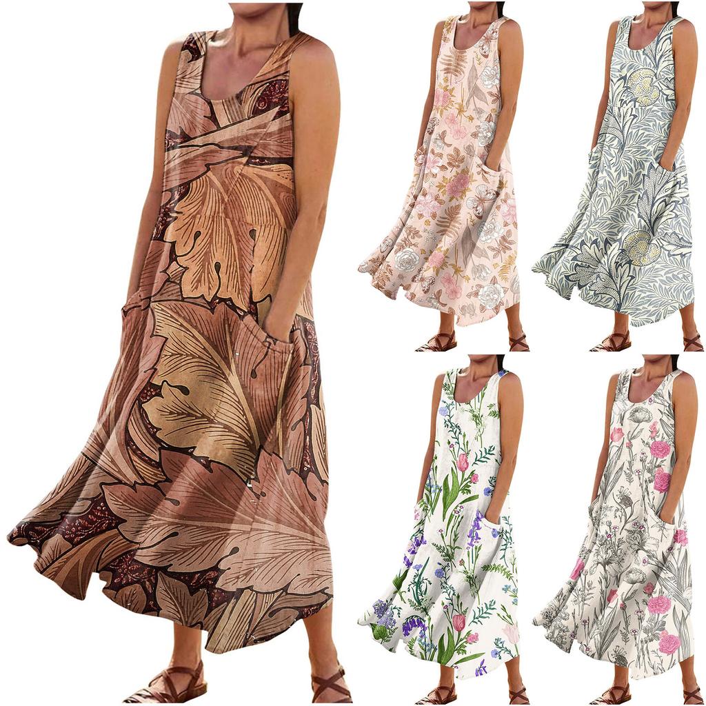 Женское летнее повседневное модное платье без рукавов с круглым вырезом и карманом в стиле ретро