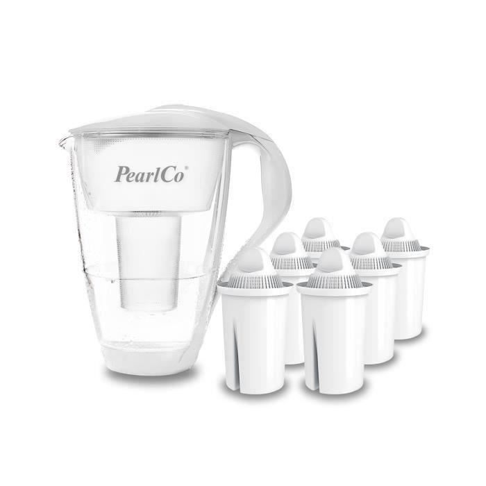 Filtre à eau en verre PearlCo (blanc) avec 6 cartouche filtrante classique (compatible avec Brita Classic)