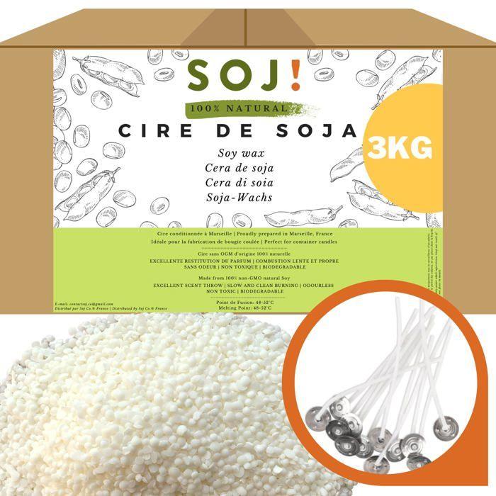 Soj - cire de soja végétale sans ogm, 3kg, e-book+30 mèches offertes! cire pour bougie, cire de soja pour bougie