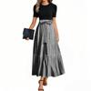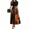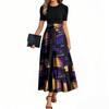 Женские модные повседневные платья с поясом, коротким рукавом, круглым вырезом, геометрическим узором, элегантные платья с темпераментом