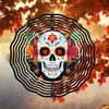 2D Metal Sugar Skull Wind Chime with Floral Design Colorful Wind-Powered Hanging Decor for Garden Patio Holiday