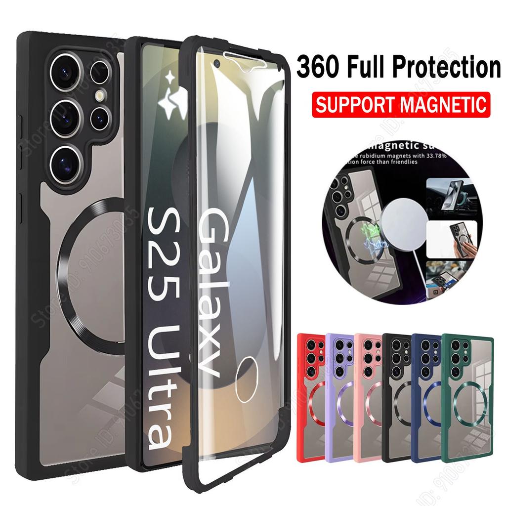 Двусторонний чехол с полной защитой 360° для Samsung S25 Ultra S22 S23 S21 S24 Plus Магнитная крышка для беспроводной зарядки Magsafe