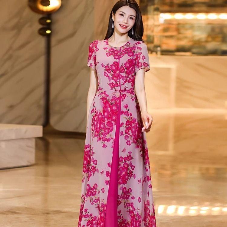 Модное женское летнее платье, цветочное шифоновое длинное платье, стройнящий и изящный стиль — купить товар онлайн с бесплатной доставкой по всему миру!