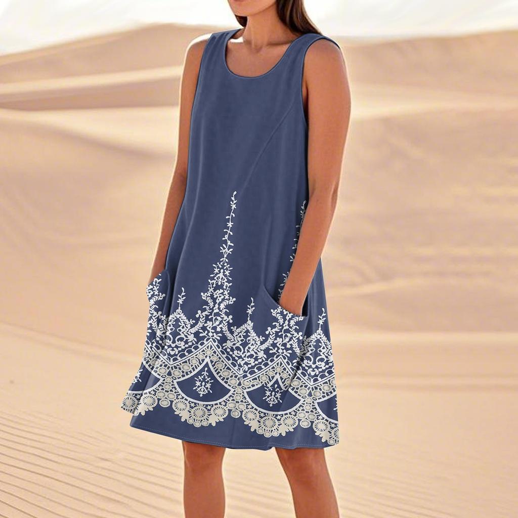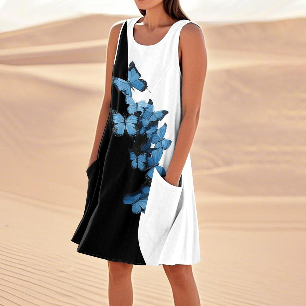 Летние платья для женщин, свободные пляжные повседневные сарафаны без рукавов с карманами, платье-майка