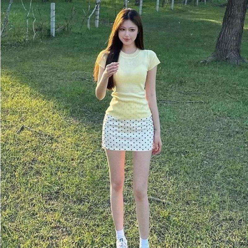 Белая юбка А-силуэта с принтом в горошек для женщин, новый стиль, маленькая короткая юбка