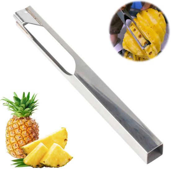 Портативное удобство: Компактная и портативная, эта овощечистка для ананасов — ваше решение для наслаждения фруктами в любое время и в любом месте.. Его компактный дизайн позволяет легко хранить его на кухне или в сумке, позволяя вам без труда чистить ананасы для быстрого и вкусного перекуса.