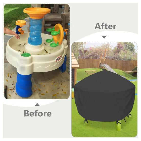 И в дождь, и в солнце эта накидка сохраняет уличные игрушки вашего малыша сухими и чистыми. Благодаря плотной конструкции, предотвращающей скопление влаги, вы можете быть уверены, что ваш ребенок сможет продолжить играть с водным столом сразу после дождя без каких-либо хлопот с уборкой.