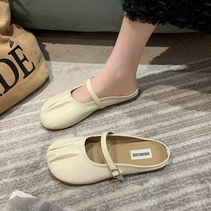 Тапочки женские летние для улицы, плоские ленивые туфли для беременных, повседневные с закрытым носком, новые одинарные туфли, полушлепки на половину стопы 2025