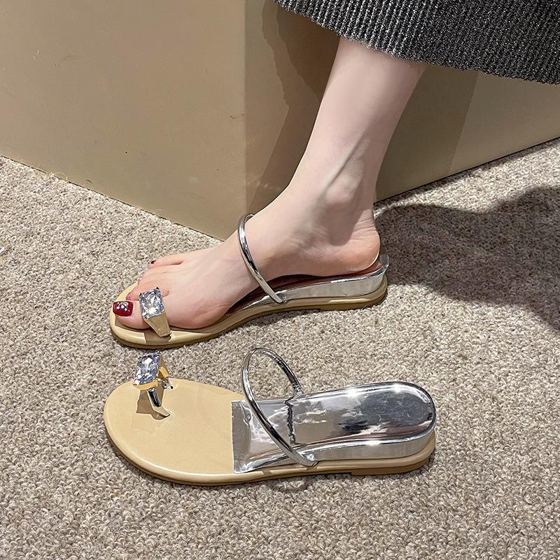 Стразы сандалии носок голубиные яйца 2025 новое слово с повседневными женскими танкетками пляжные шлепанцы женщины