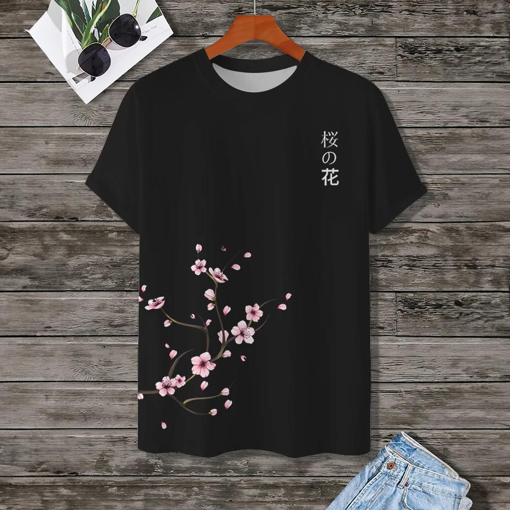 Футболка мужская в японском стиле с узором цветущей сакуры, китайская, 3D, с каллиграфией цветущей сливы, с круглым вырезом, уличная, повседневная, унисекс