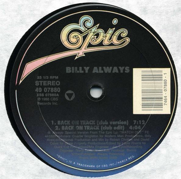 12inch Record BILLY ALWAYS - Back On Track 4907880 Epic 1988 US Soul/Funk Used