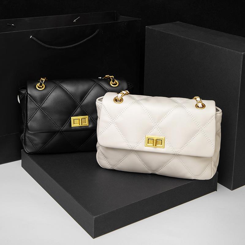 Весна и Лето Новая Бриллиантовая Универсальная Цепочка Одноплечевая Сумка Кроссбоди Высокое Качество Большая Вместимость Нишевая Женская Маленькая Квадратная Сумка