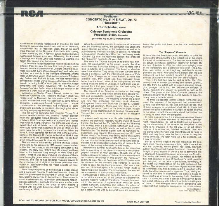 ХУДОЖНИК: Бетховен, Артур Шнабель, Фредерик Сток, Чикагский симфонический оркестр