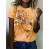 Женская футболка с цветочным принтом, круглым вырезом и коротким рукавом, с 3D-принтом бабочек, элегантная повседневная одежда, весна-лето