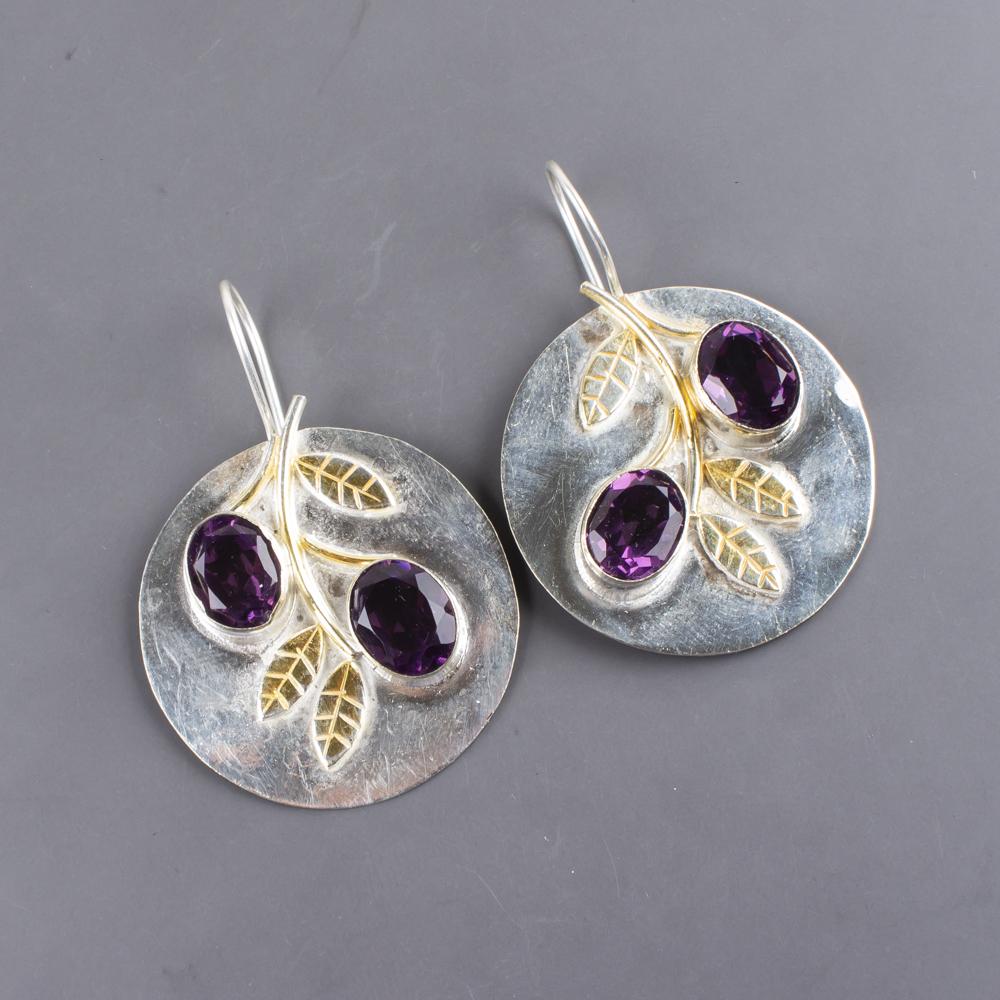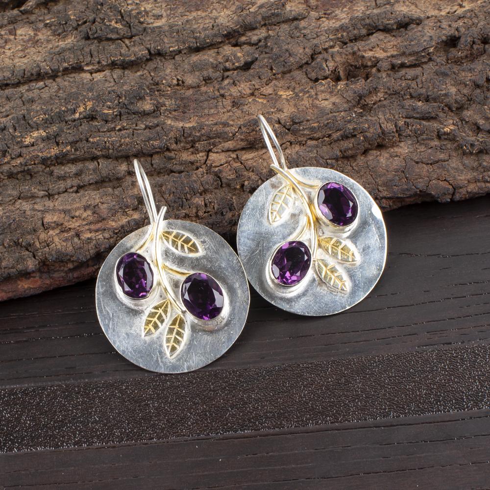 Африканский аметист Серьги из драгоценных камней ручной работы, Серьги из стерлингового серебра 925 пробы, Антикварные ювелирные изделия, Серьги для подарка на помолвку