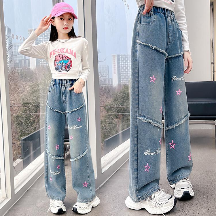Девичьи джинсы Весенне-осенняя мода Женские прямые брюки Свободные брюки с широкими штанинами Длинные брюки Свободные брюки с принтом