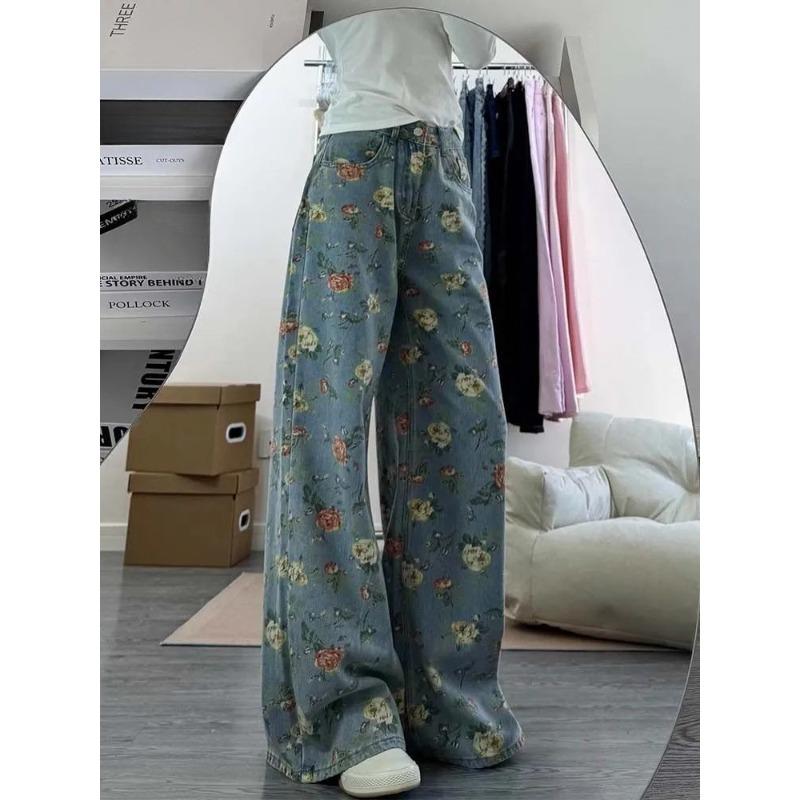 Джинсы с широкими штанинами с цветочным принтом для женщин Летние Свободные Брюки в американском ретро стиле Модные с высокой талией Шикарные Универсальные Брюки — купить товар онлайн с бесплатной доставкой по всему миру!